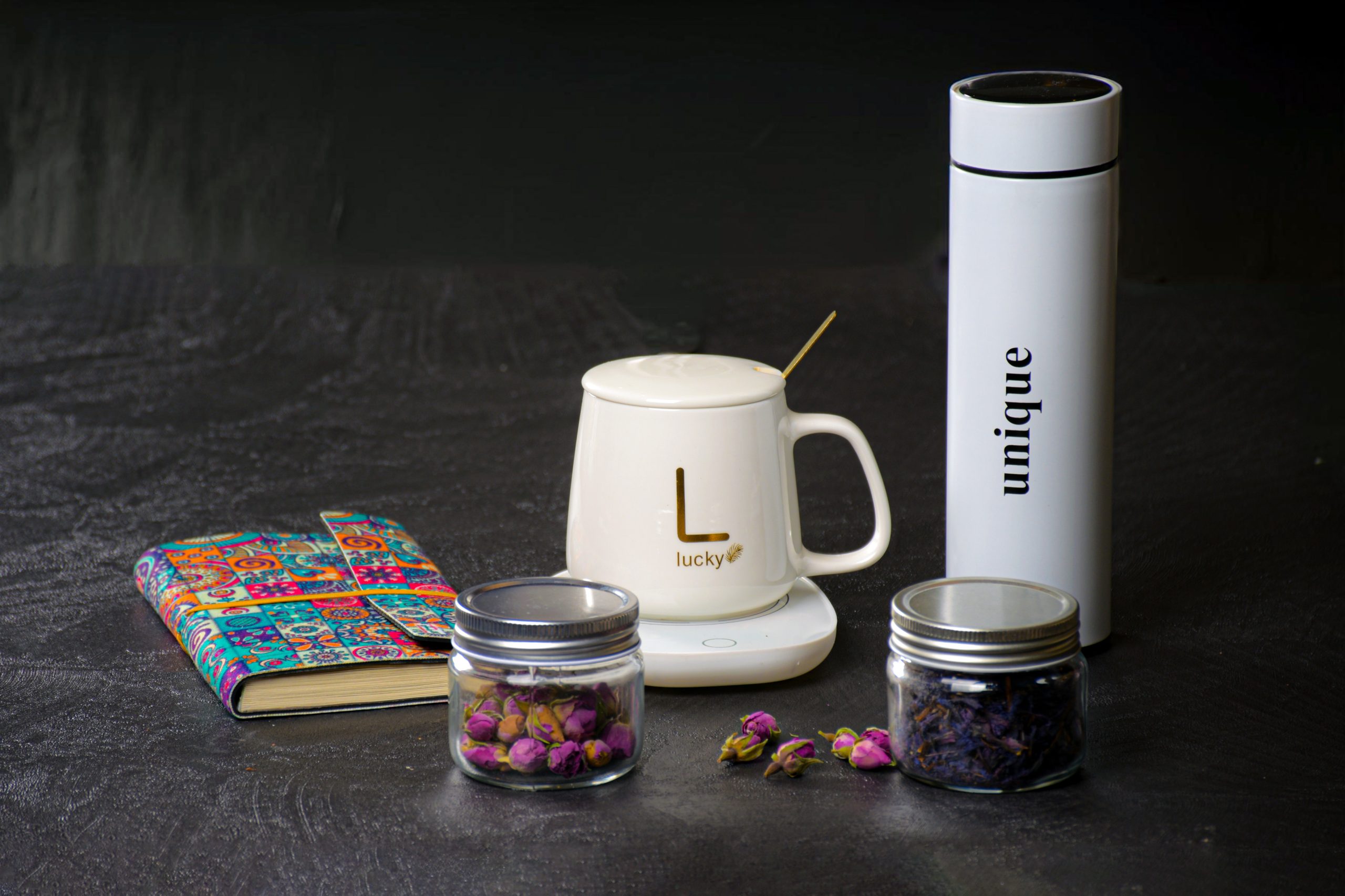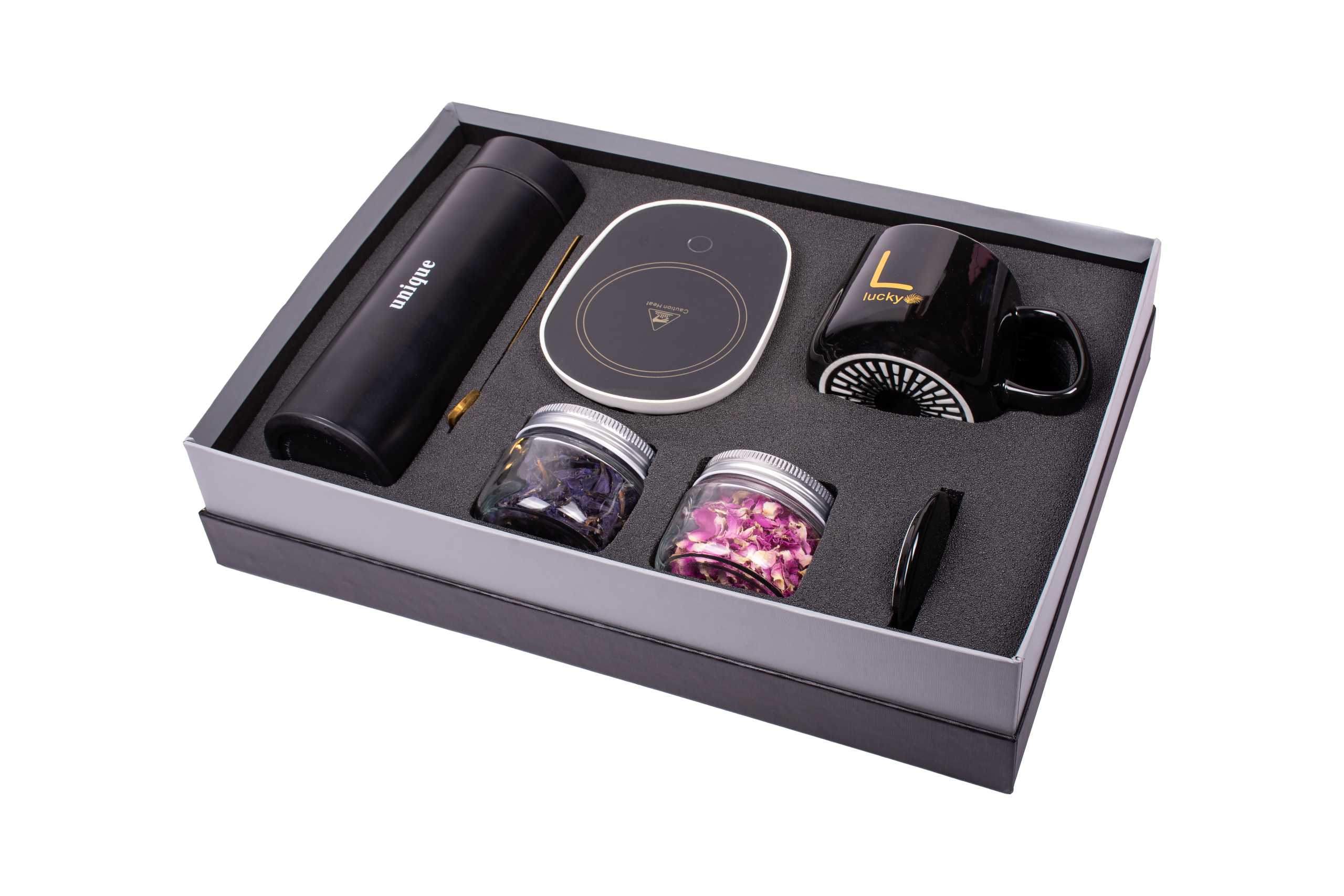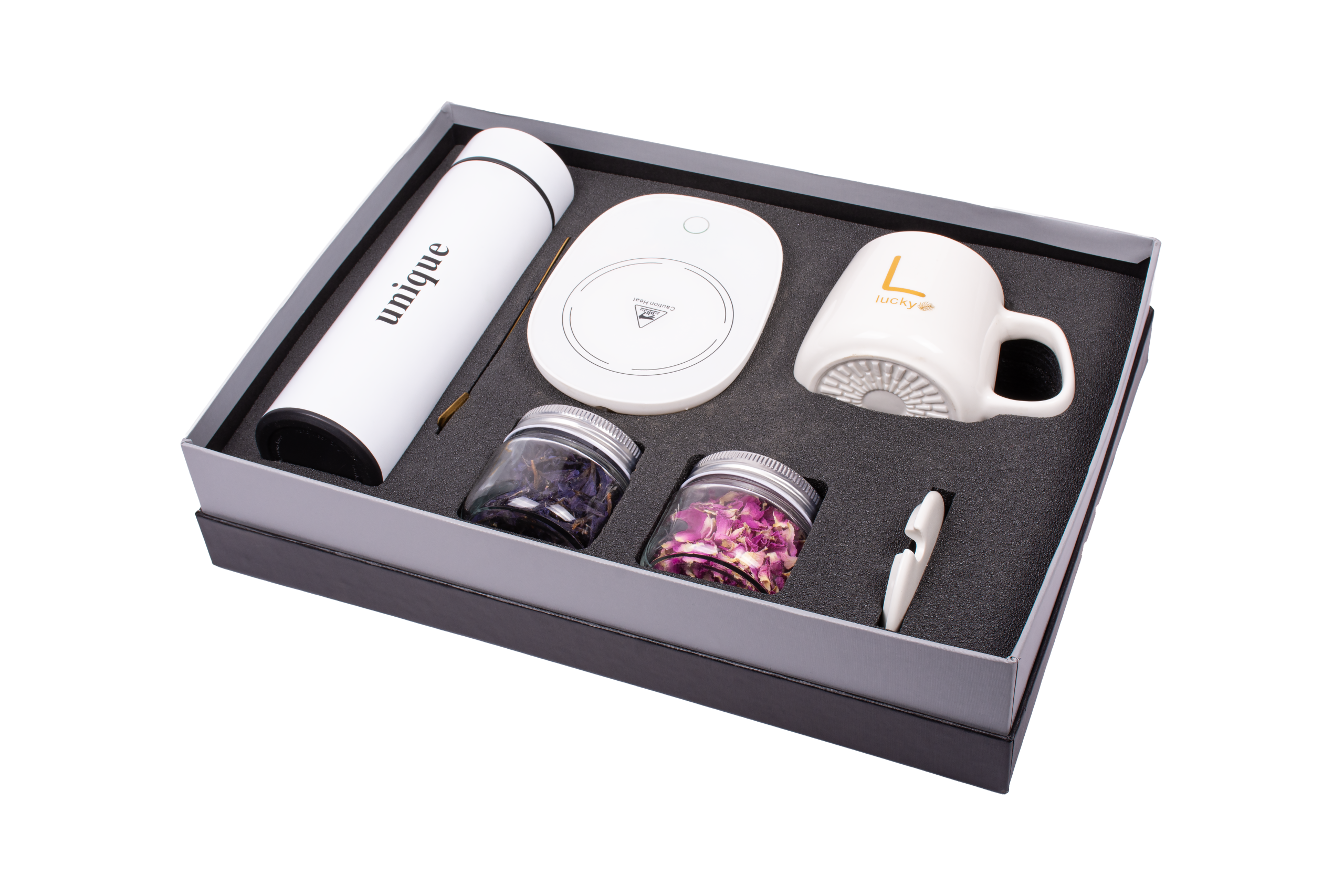 ست هدیه 4 تکه شامل تراول ماگ یونیک، ماگ هیتردار، دو عدد جار شیشه ای که داخل یک هاردباکس شکیل سه تکه ست شده اند.